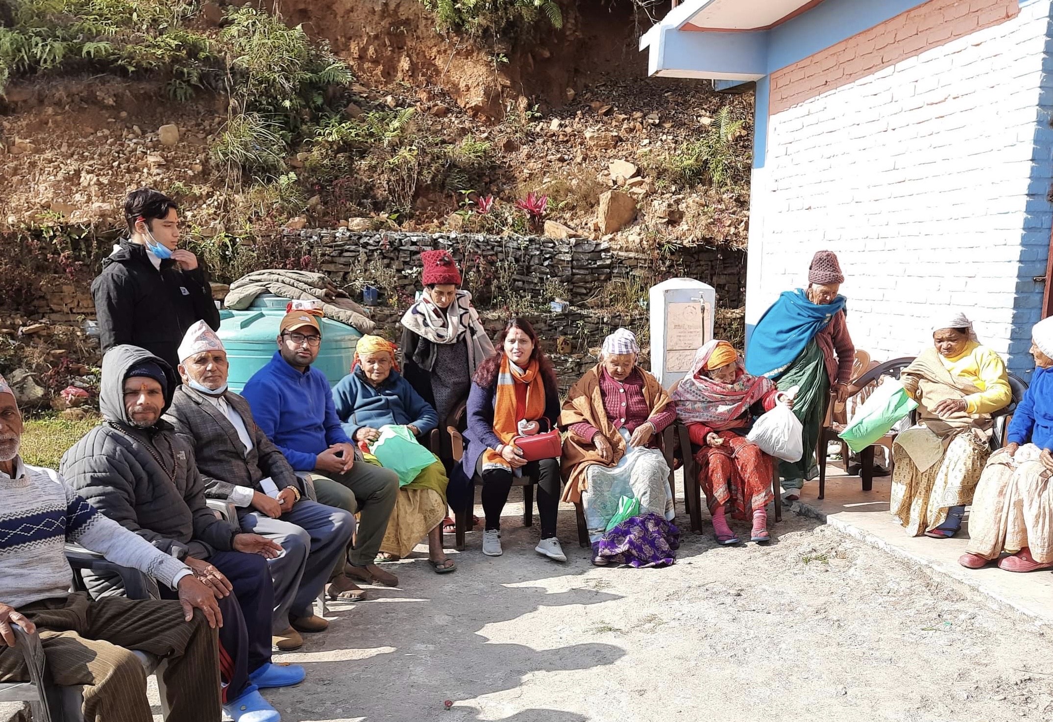 I have sent a few photos from this year’s Christmas gift distribution program in Pokhara. On the recommendation of my sister, we visited an elderly centre in Pokhara and gave away gifts to the elderly women and men there. The Centre has been providing for 12 elderly people (both women and men) of which two were in the hospital due to some regular health issues. The Centre is in the middle of a small woods but is sunny and fresh. For the winter, we provided scarves to the ladies and jackets to the men. To support their daily ration, we provided rice, lentil, sugar, tea, salt and a special Christmas food packet too. As you can see in the photos all residents were happy and grateful. They send you lots of thanks and warm greetings.